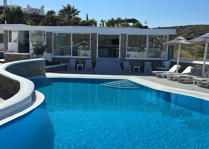 Located just a 5-minute walk from the Ornos Beach, the 2-star Casa Bianca Hotel Ornos includes a swimming pool and a patio. Furnished with wooden ceilings, the hotel offers parking on site.